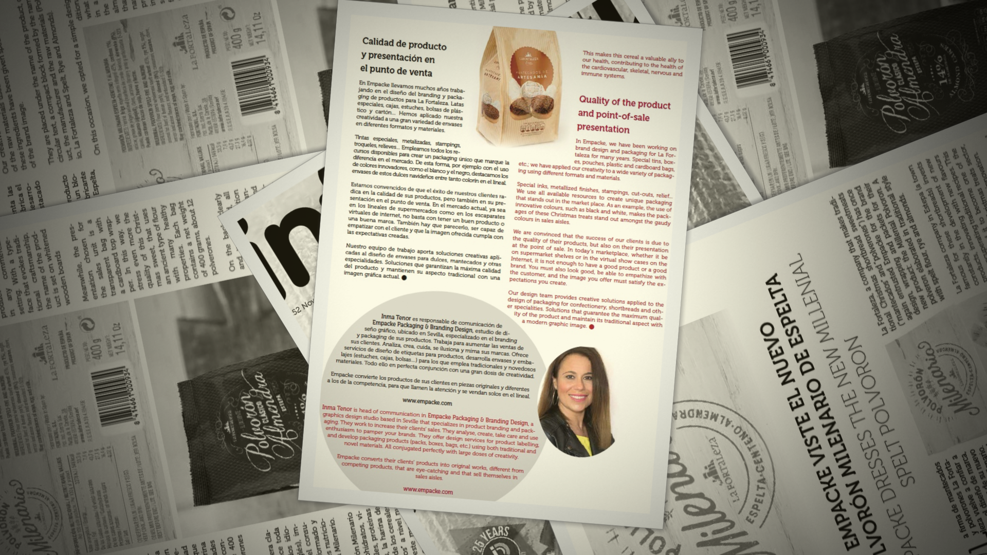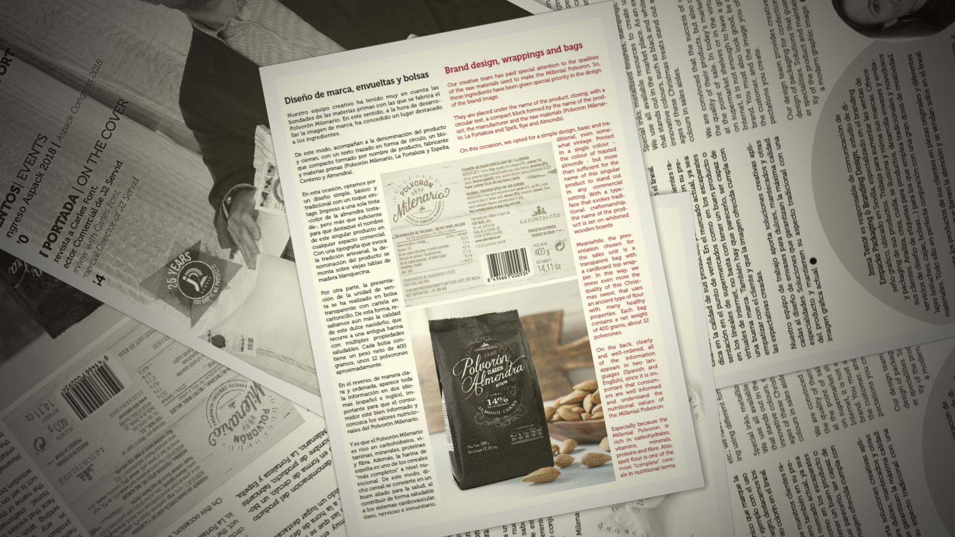 La revista Infopack del mes de Noviembre, número 252, ya está disponible. En sus páginas dedica un reportaje a Empacke y a nuestro trabajo de diseño de marca, envueltas y bolsas del Polvorón Milenario. Este original dulce, de la empresa estepeña la Fortaleza, está elaborado con harina de espelta, centeno y almendra, combinando así tradición e innovación.