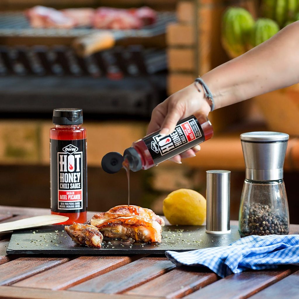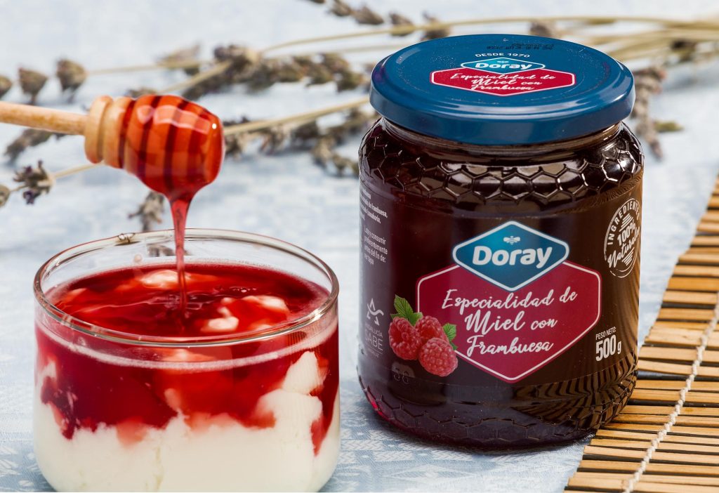 R: Somos una marca de garantía, ya que todas nuestras mieles son cosechadas por apicultores andaluces. Disponemos de una gama tradicional compuesta por diferentes tipos de mieles, como la miel con lavanda, miel con azahar, miel con castaño, miel con retama, miel con eucalipto, entro otras. Como novedad, hemos incluido en nuestro catálogo de productos la miel con trozo de panal y panal en miel, consiguiendo beneficios para el sector apícola andaluz aportando valor añadido. En los últimos años, hemos apostado por la innovación, desarrollando una nueva gama de productos que consiste principalmente en agregar ingredientes naturales a la miel presentando un nuevo concepto de consumo que nos hace apartarnos del concepto tradicional de la miel. De todo esto, nacen Doray Fruit Honey, la línea de productos que combina miel y zumo de frutas naturales; y Doray Hot Honey, la línea de salsas picantes 100% naturales.