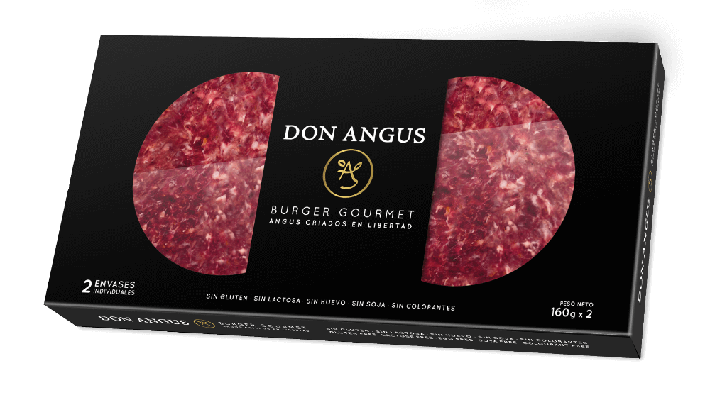 - Se destacan las propiedades ecológica, sana y 100% natural de la carne, desde la portada de la carpeta. Para ello utilizamos de fondo la imagen del tronco de una encina. También empleamos imágenes de ejemplares de la raza Angus pastando en libertad.